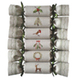 Made from natural linen and embroidered with satin thread, each cracker is tied either end with a green satin ribbon.